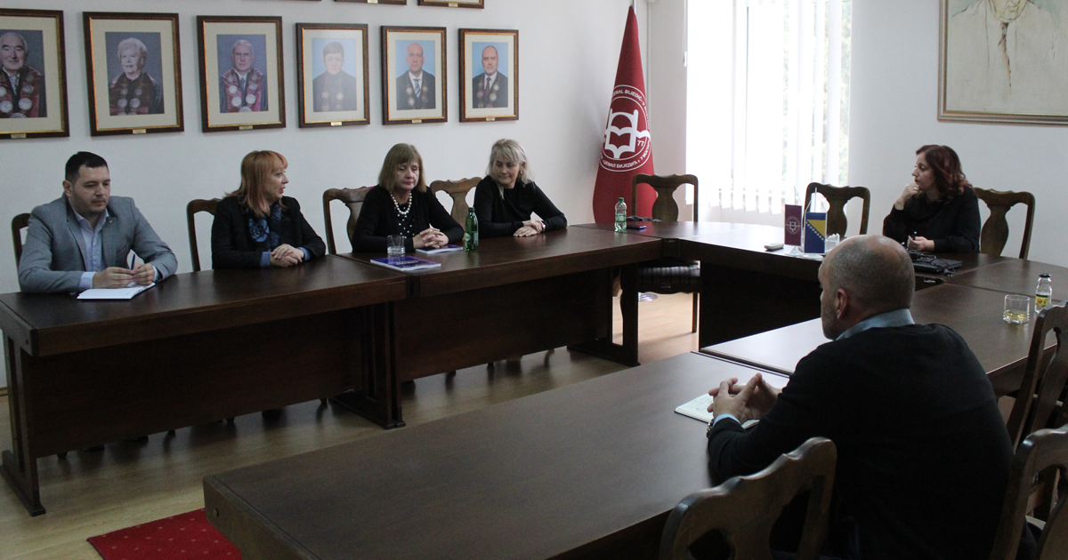 U rektoratu Univerziteta „Džemal Bijedić“ u Mostaru održan je sastanak na kojem su prisustvovali ombudsmenka dr. Jasminka Džumhur, ombudsmenka Nives Jukić, šef kabineta Mahir Mulagić i stručna savjetnica za međunarodnu saradnju Ivona Ražnjatović, te rektorica Univerziteta prof. dr. Alena Huseinbegović, prorektorica za naučno-nastavna pitanja prof. dr. Azra Špago, prorektorica za finansije prof. dr. Armina Hubana i prorektor za međunarodnu i međuuniverzitetsku saradnju prof. dr. Rijad Novaković.
