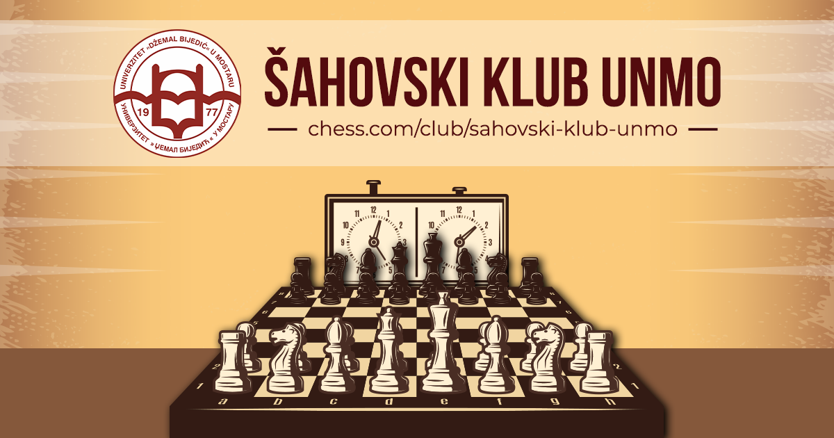 Sa zadovoljstvom informišemo sve ljubitelje šaha da je na Univerzitetu „Džemal Bijedić“ u Mostaru osnovan novi šahovski klub koji će djelovati pod nazivom „Šahovski klub UNMO“.