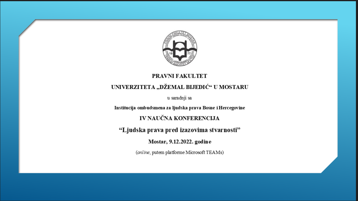 Pravni fakultet Univerziteta "Džemal Bijedić" u Mostaru u saradnji sa Institucij ...