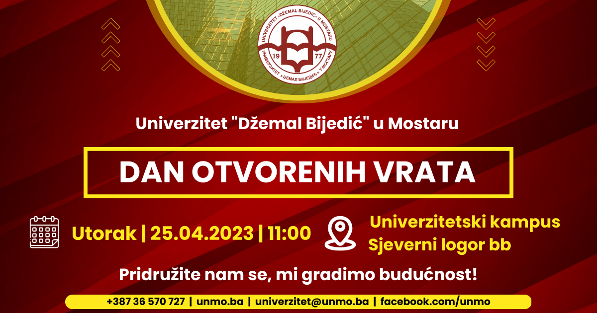 Dan otvorenih vrata na Univerzitetu “Džemal Bijedić” u Mostaru bit će upriličen u utorak, 25. aprila 2023. godine u univerzitetskom kampusu Sjeverni logor.