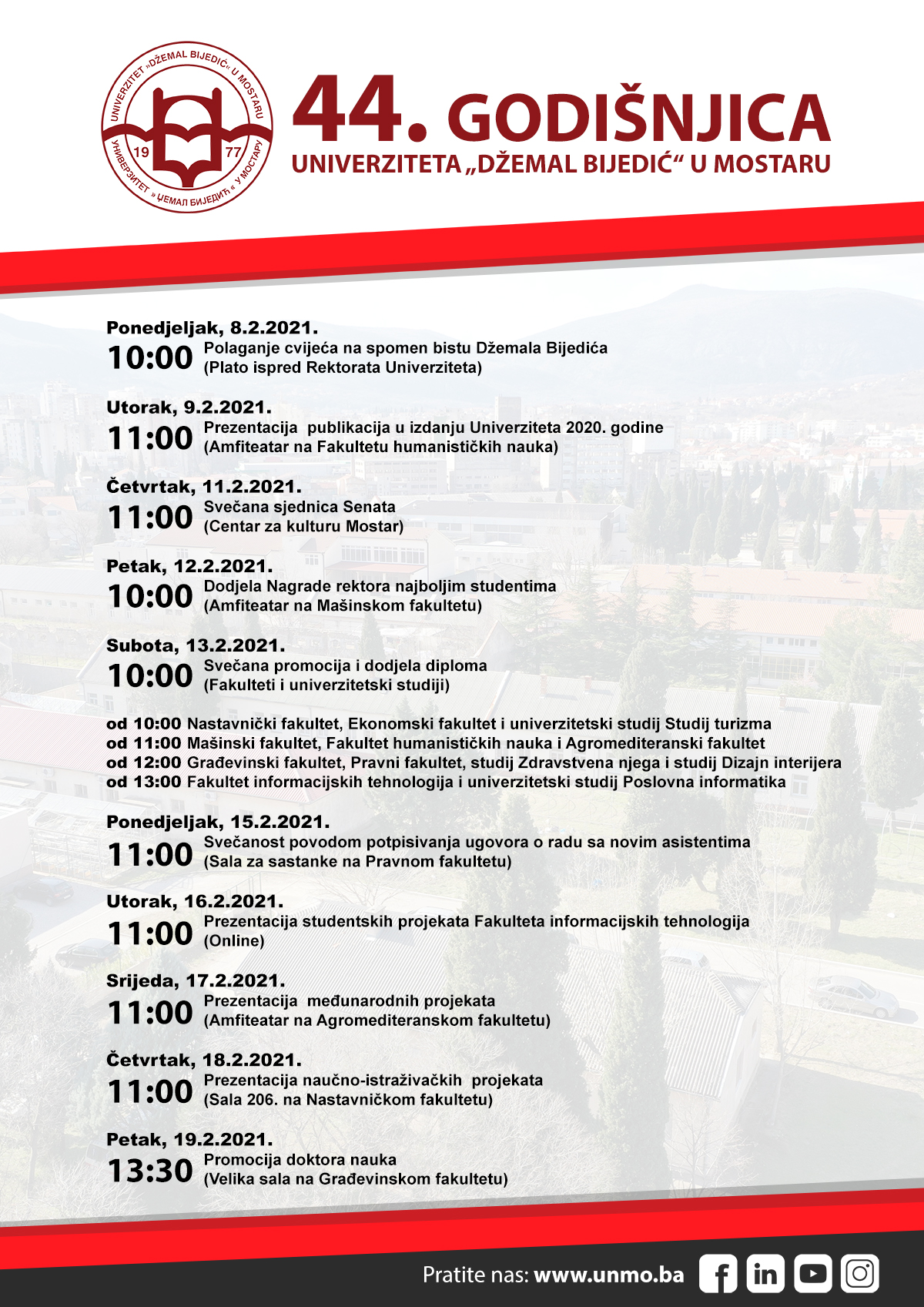 - od 11:00 Mašinski fakultet, Fakultet humanističkih nauka i Agromediteranski fakultet