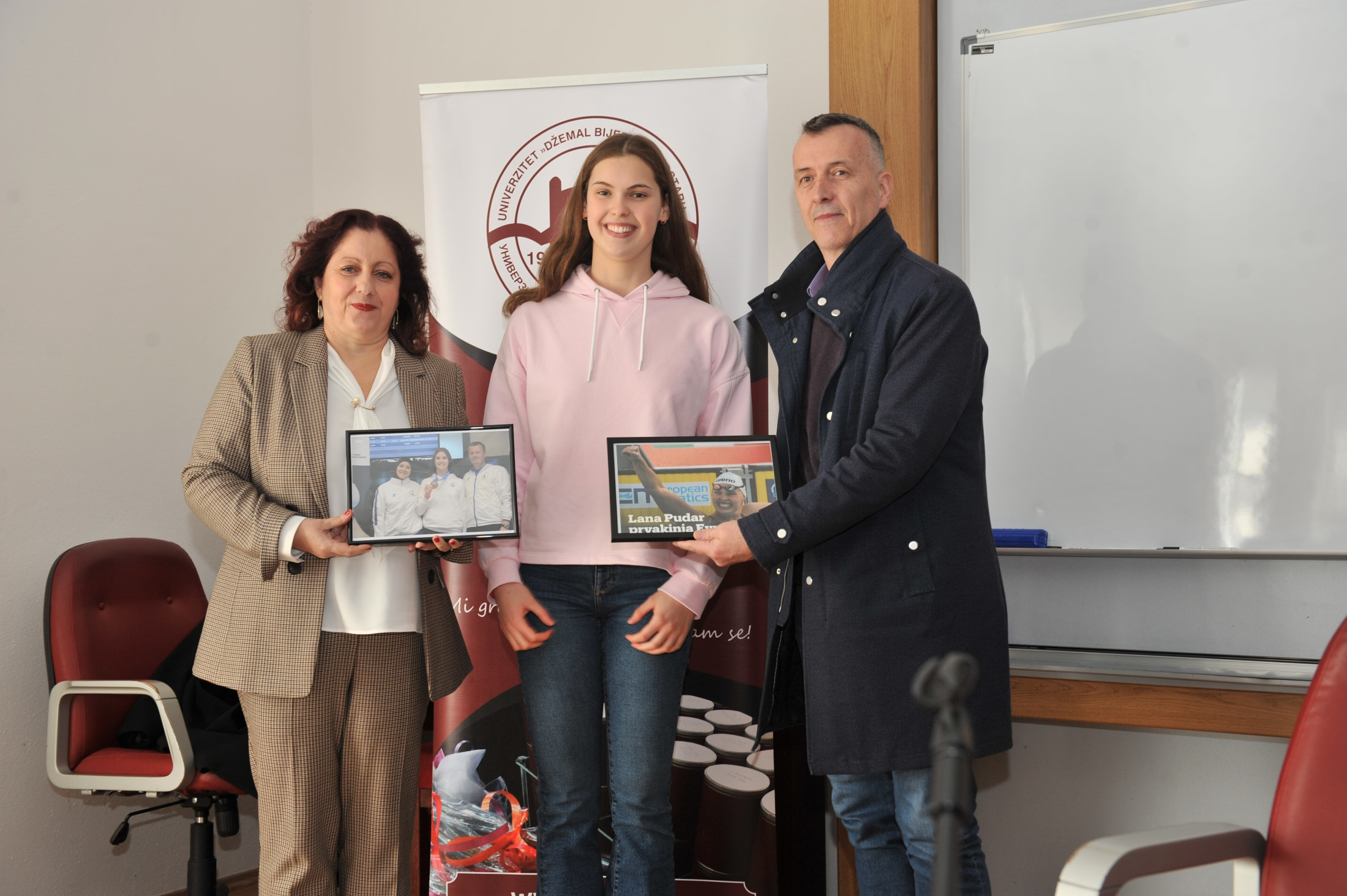 Prisutnim se obratio i prof. dr. Damir Đedović koji je kazao kako ovaj prostor ima puno talenata, ali da su od početka uvidjeli da je Lana predodređena za uspjeh. Zahvalio se menadžmentu Univerziteta „Džemal Bijedić“ u Mostaru na pomoći i podršci.
