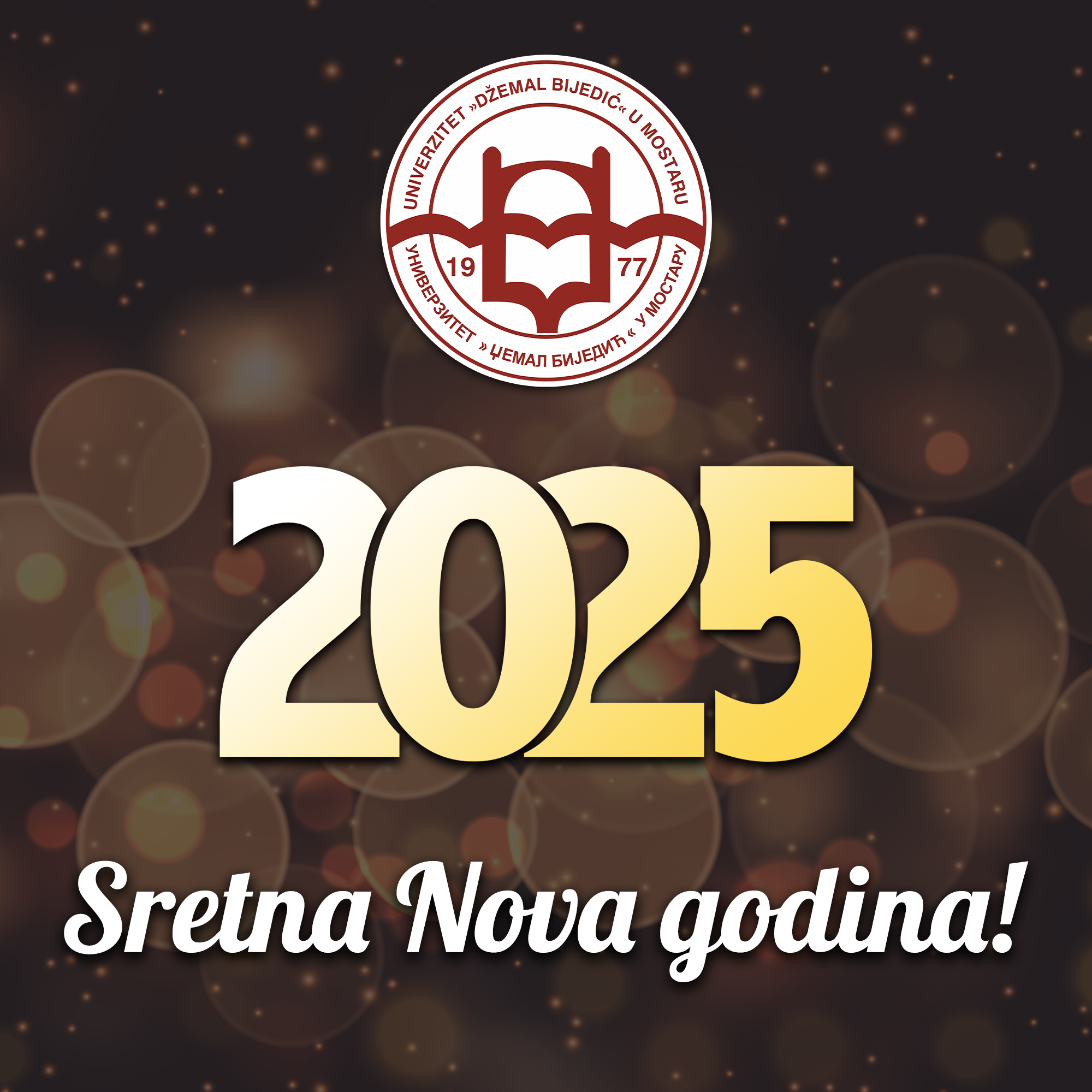 Zaposlenicima, saradnicima, studentima i svim građanima upućujemo iskrene čestitke povodom nastupajuće Nove godine, uz želju da 2025. godina bude ispunjena zdravljem, srećom i uspjehom.