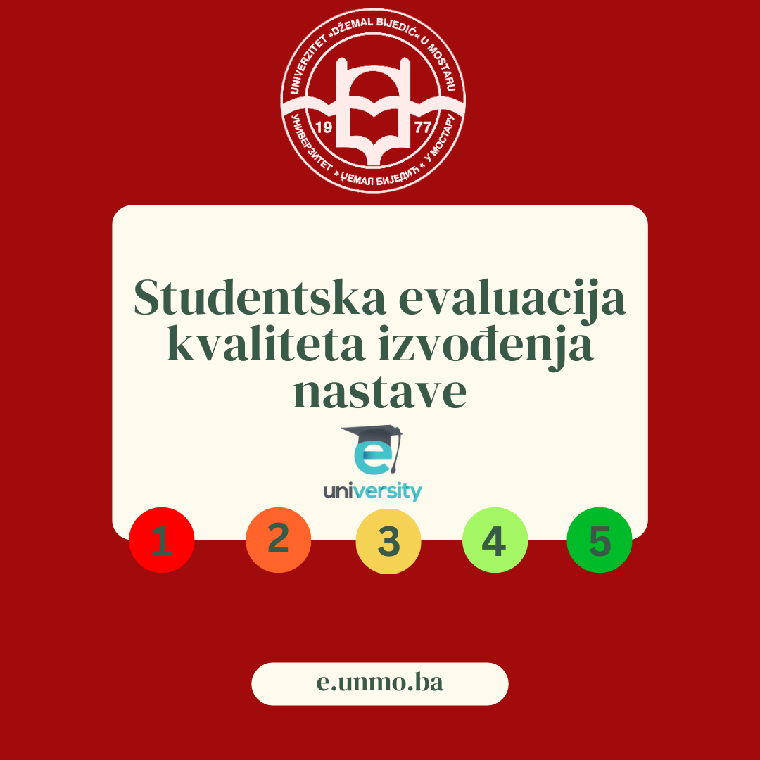 Shodno tome, Univerzitet znatno ulaže u sistem kvaliteta i evaluacije, provođenjem periodičnih studentskih evaluacija i samoevaluacija uposlenika Univerziteta. Pored toga, formiran je Odbor za kvalitet Univerziteta "Džemal Bijedić" u Mostaru, te timovi za kvalitet koji djeluju na nivou fakulteta i univerzitetskih studija koji egzistiraju na Univerzitetu "Džemal Bijedić" u Mostaru.